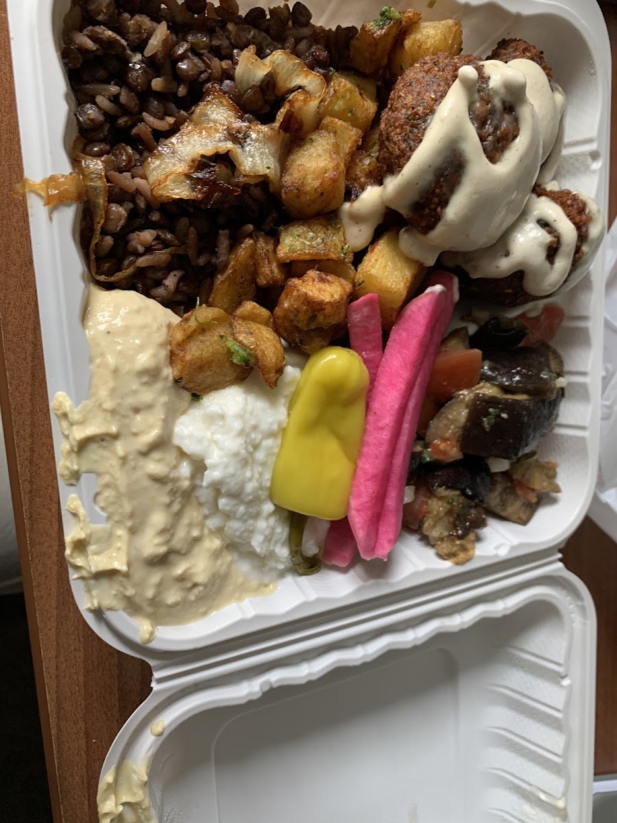 Menu highlights such as the Beef Shawarma Plate and Trio Shish Taouk are straightforward representations of Lebanese cuisine, with well-balanced spices and fresh ingredients. The accompanying Irish potatoes (not your typical side) show attention to texture and flavor, often noted for being soft and satisfying alongside the main dishes. For vegetarians or those looking for lighter options, the fresh salads offer a crunchy, healthy contrast. The house-made sauces, particularly the garlic and white sauces, add a distinctive touch, elevating the simple wraps and plates without overwhelming them.